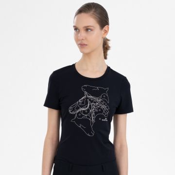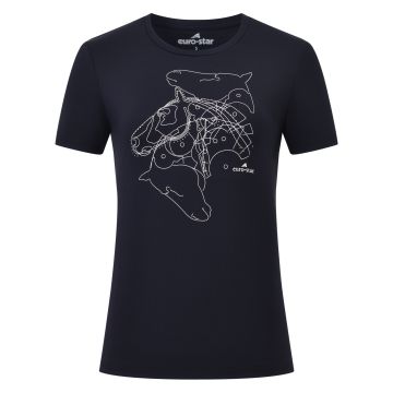 Elegantes euro-star Damen-Longsleeve mit AOP-Print, UV40+-Schutz, Mesh und Strass-Pferdekopf