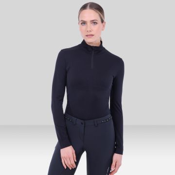 Ready to add a touch of sparkle and supreme comfort to your riding wardrobe? Meet the ES-Adeline Top, where innovative design meets exquisite elegance for every dedicated rider. This beautiful half-zip top isn't just about looking good; it's engineered for peak performance and style in the arena and beyond. You'll adore the subtle yet striking rhinestone artwork gracing the collar, perfectly complemented by delicate rhinestones tracing both sides of the zipper – a nod to refined equestrian fashion. Crafted for ease of movement, the clever triangle slits from the forwarded sideseam ensure you experience unrestricted comfort during every trot, canter, or jump. It’s the perfect blend of technical innovation and exclusive style, designed to keep you feeling confident and looking effortlessly chic.