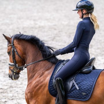 Elevate your riding ensemble with the ES-Coco General Purpose Saddlepad, where innovation meets impeccable style for the discerning rider. Designed for both comfort and a standout look in the arena or during a relaxed hack, this saddlepad boasts a luxurious satin binding that adds a touch of refined elegance. You'll appreciate the distinctive euro-star logo tape along the backline, a subtle nod to our commitment to performance and exclusivity, complemented by exquisite embroidery. Its thoughtfully engineered design ensures optimal fit and stability without the need for billet straps, offering a clean, sophisticated profile under your saddle. Experience the perfect blend of advanced functionality and equestrian fashion with the ES-Coco.