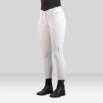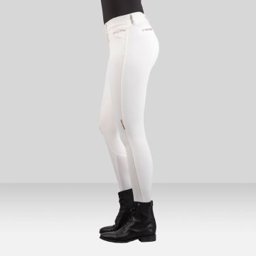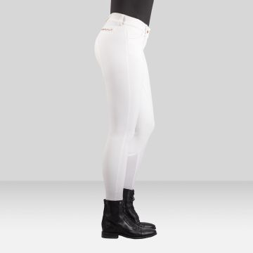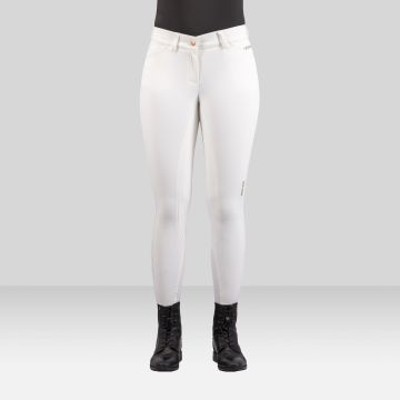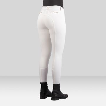 Ladies' sporty riding breeches with branded silicon grip, phone pockets, elegant body-shaping lines and satin jacquard waistband for a superior fit and comfort