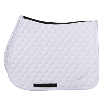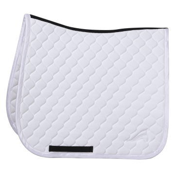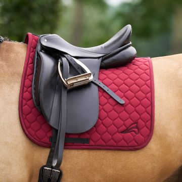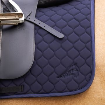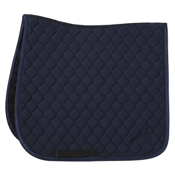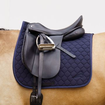 At euro-star, you can choose from dressage saddlepads and all-purpose saddlepads. Dressage saddlepads are designed for use under a dressage saddle and have a straight, long shape, just like the saddle. All-purpose saddlepads fit both jumping and all-purpose saddles, and are rounder and shorter at the front. A saddlepad ensures that the saddle sits comfortably on your horse's back, preventing any rubbing. In addition to protecting your horse's back, a saddlepad is breathable and absorbs sweat. This keeps your saddle safe from sweat stains, helping to maintain the leather's condition.