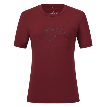 Ladies' fitted halter top in quick-dry breathable fabric, featuring chic rhinestone horsehead logo and Eurostar AW detail, perfect for stylish summer riding